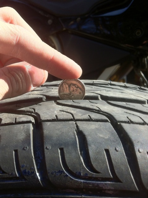 Nickel resting on lowest part of tire, not the wear bar