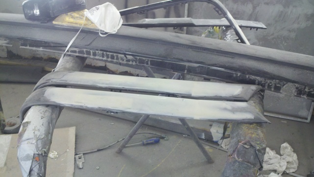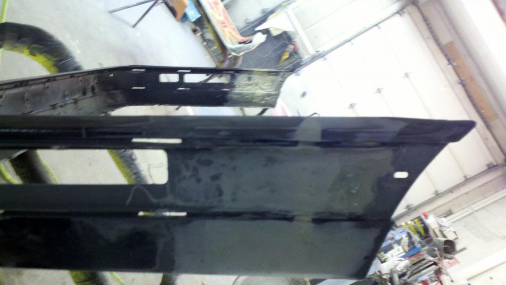 Here is a picture of the rear bumper. It is black, but you would need to repaint. As you can see, I kept the factory curve where it meets the wheel well. Some people just hack that part off; it might look close, but I don't think it looks good. I molded it together with professional autobody glue (stuff costs $50 a tube!) and a couple of pieces of fiberglass fabric.