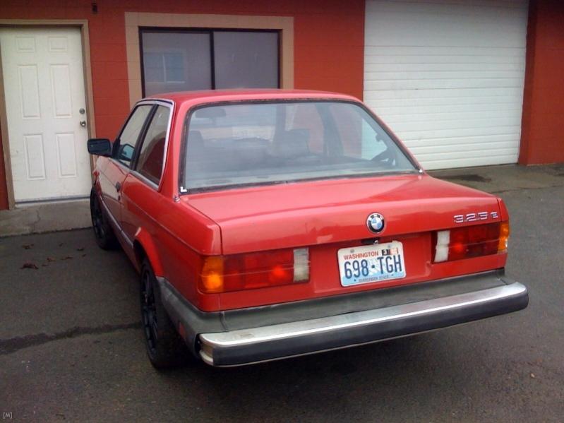 From what I can tell, its a 198x 325e with the Sport Package. Unknown wheels, 16xk on the clock. Decent shape, going to repaint the door/hood/fender and have the interior redyed. It came with 2 stock wheels in the back seat.