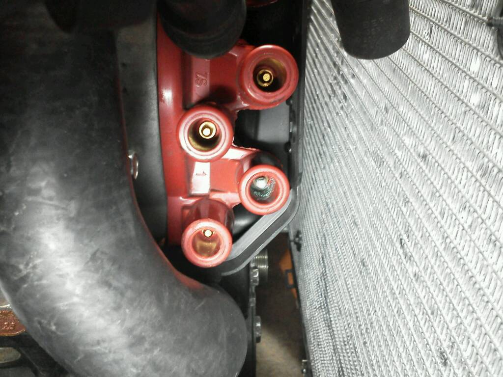 Basically, long story short, I bought a new tstat to try out today and in the process of tightening the last bolt (13mm closest to driver's side,) it decided that it wanted to crack the aluminum where it tightens to the head and break off in 3 pieces. Sorta hard to explain, but the head casting is pretty shot. HG didn't blow and head didn't crack internally (as far as I know, no oil in coolant or vice versa.) Oh well.