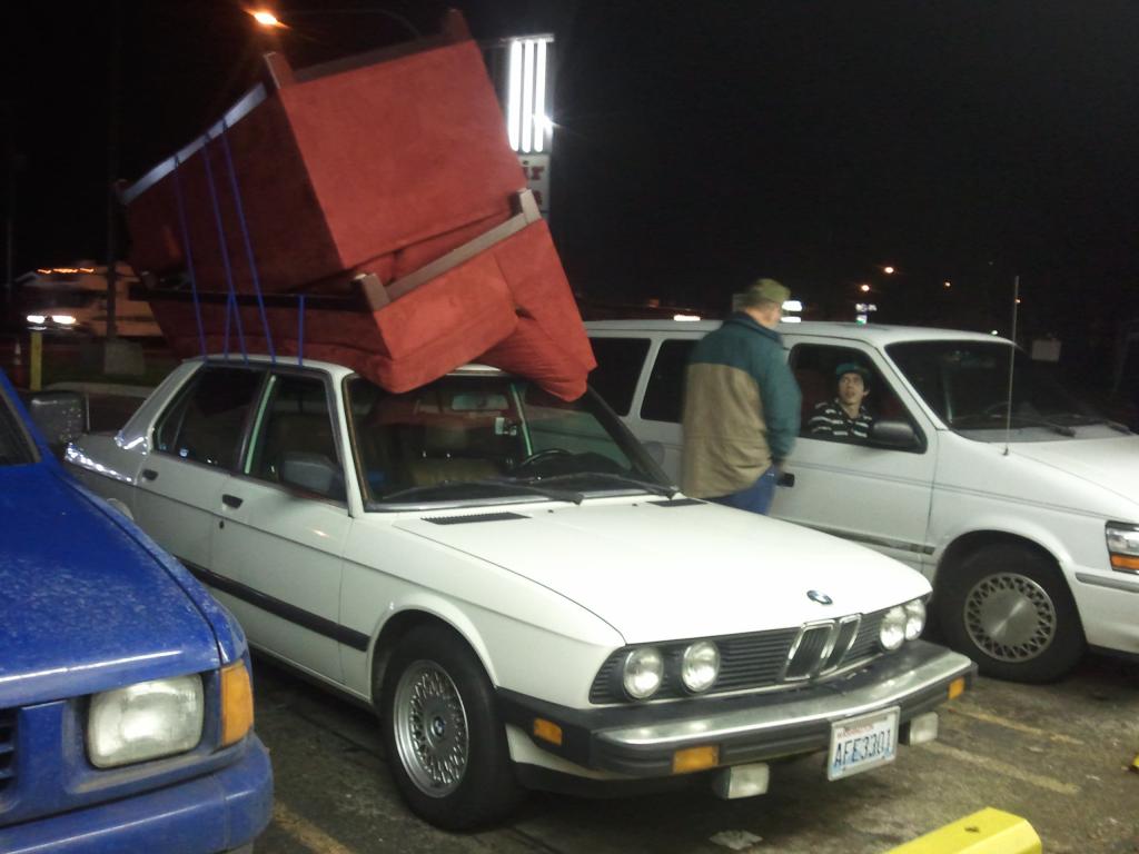 Hey bertha you think that there couch fit up em top of that there car top bahaha