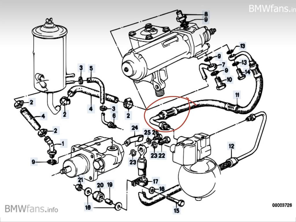 The hose is the one running from the rack to the accumulator.