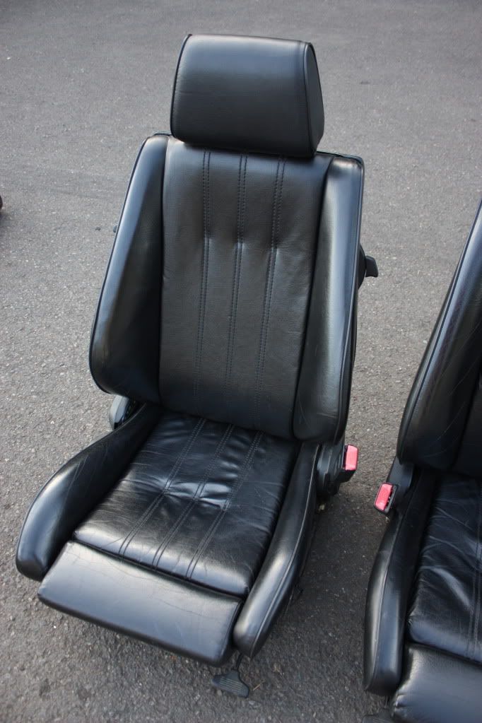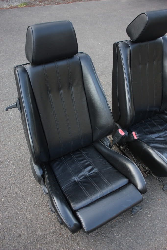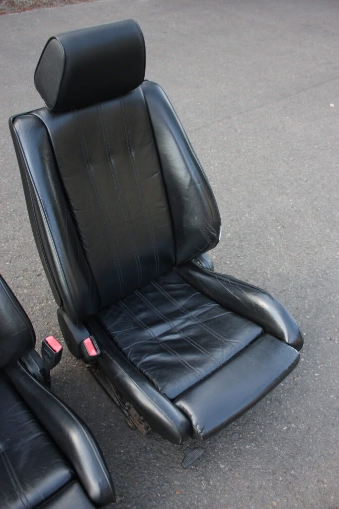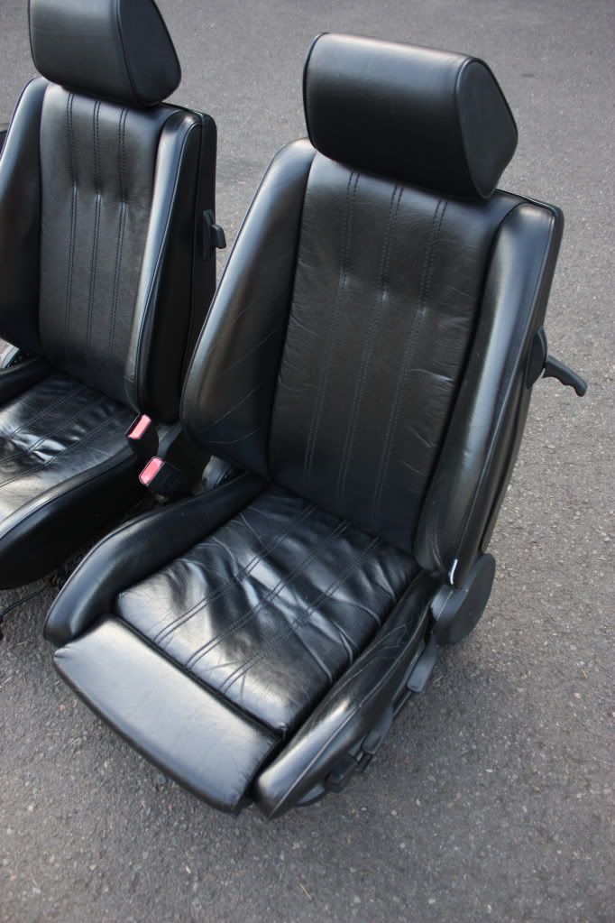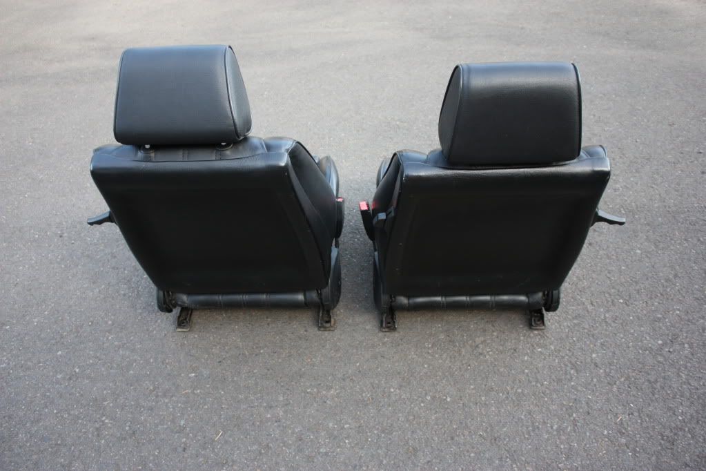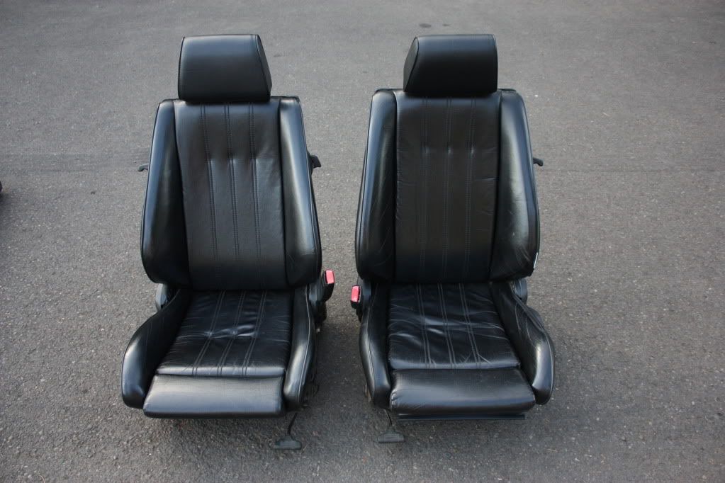 I have a lovely set of black seats and door cards for sale. All the leather is clean, rip free, soft and supple. The Sliders and mechanisms work well. The recline shocks are dead, but I have good ones to include in the sale. The only thing that could be considered damage is the small portion of the piping exposed on the drivers bolster. These are beautiful seats. Rear seat is perfect. Also includes black leather door cards for a 4 door.