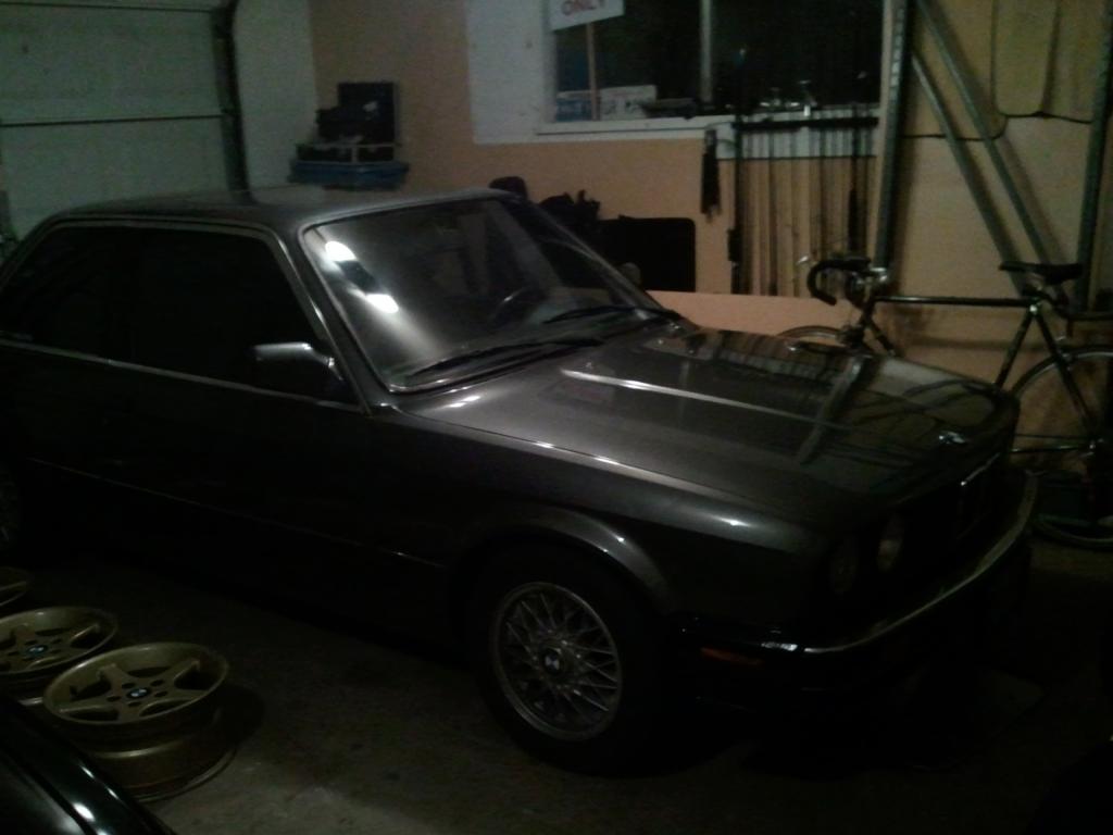 I apologize for the terrible cell phone picture. But there he is. My 87 325es in all his fresh paint sexyness glory. More pictures to come ;)