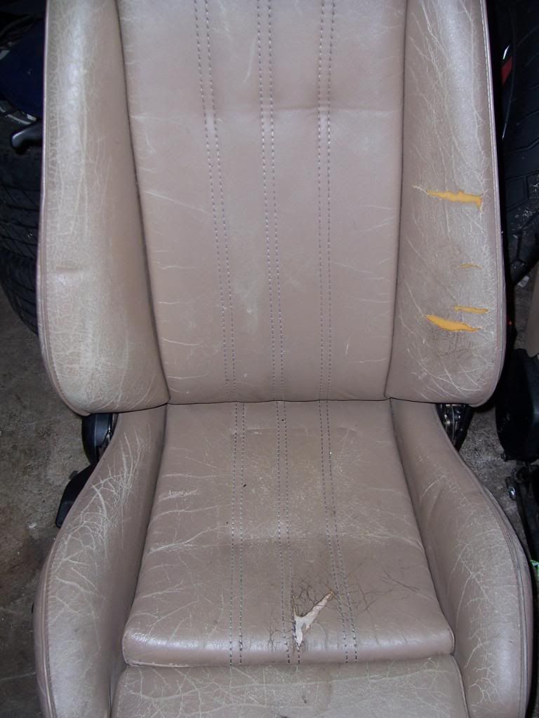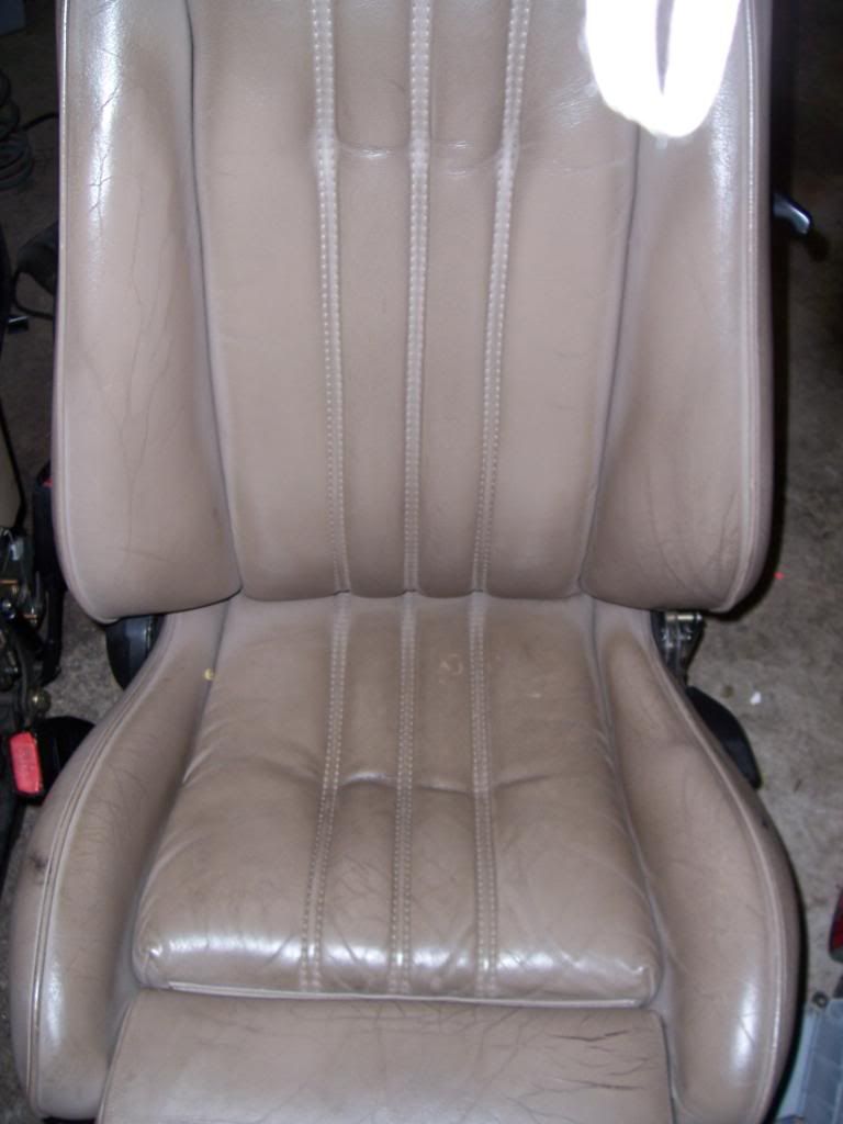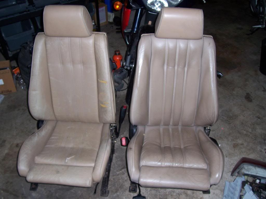 Tan leather sports - $160 - Leather o drivers is good, passenger has seen better days. Missing the little covers on the adjuster mechanism and one of the slider pull handles.