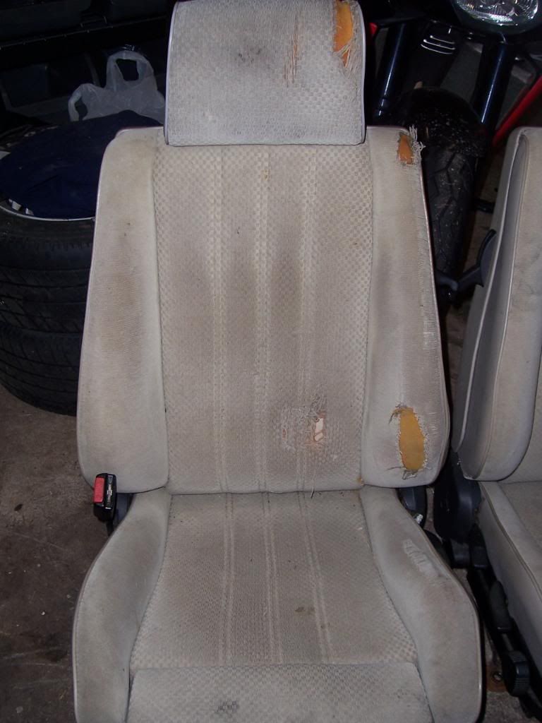 Tan cloth sports - $140 - Cloth is worn, as shown. One small plastic clip on the bottom of each are broken... maybe $2-3 each from Blunt.