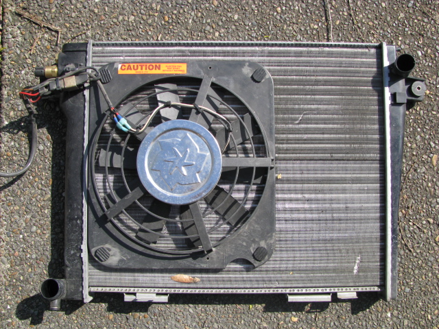 Early model radiator. bought new last year. comes with 10" electric fan and new temp sensor. Cooled my engine great with no clutch fan.