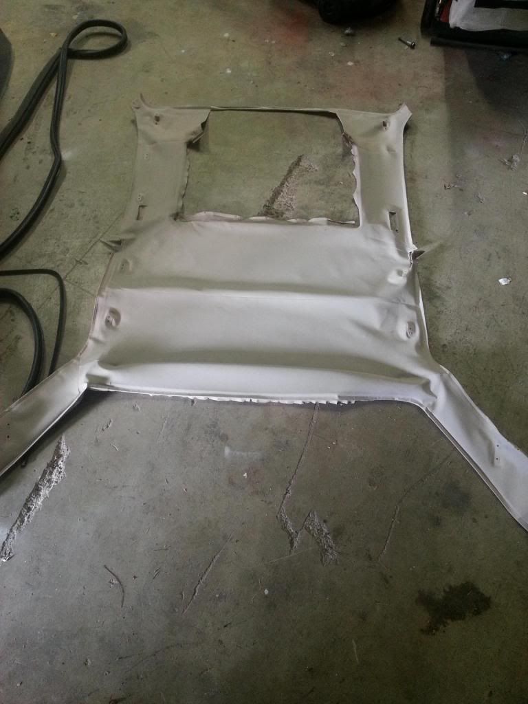 Almost flawless headliner, one smaller rip due to me not being as careful as i could have been. Wont show once installed. Maybe 2 inches long on the outside rim. 100 shipped OBO. Comes with the sunroof part as well.