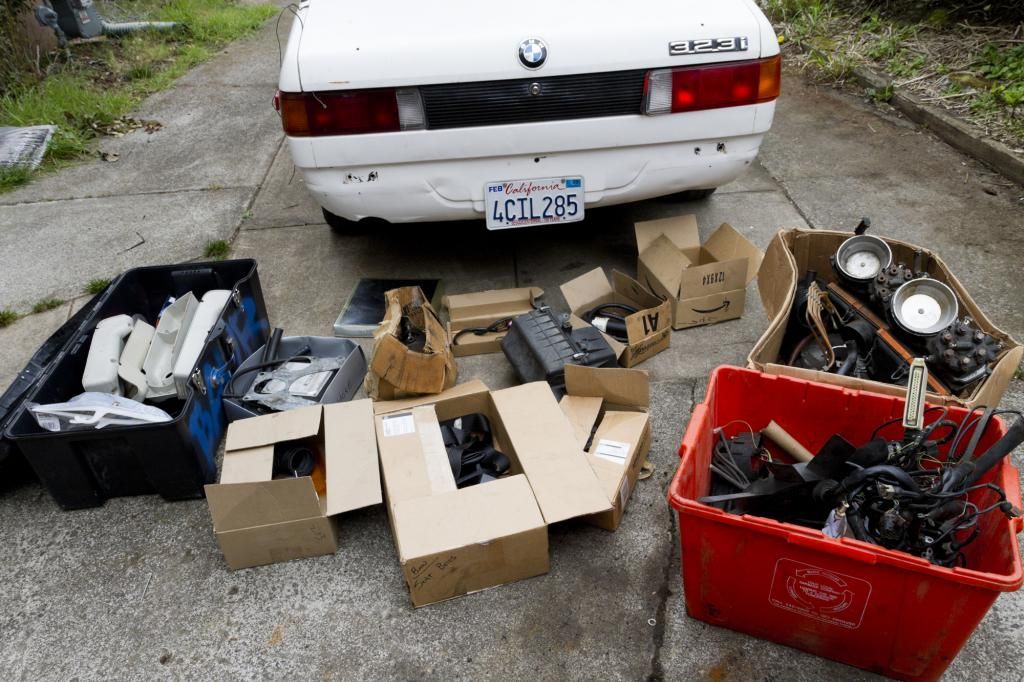 While under my ownership the timing belt broke on the original engine. The cyl. head was also found to be cracked once the engine was dismantled. The block unfortunately has been lost to time. I sold it to a couple of gents from Portland - Boone and Joe. They transported it up there from here in SLO. When sold I kept the original 3.45 LSD and that diff. is in our Tii Touring. The car also orignally had a 4-speed transmission which was sold last year.