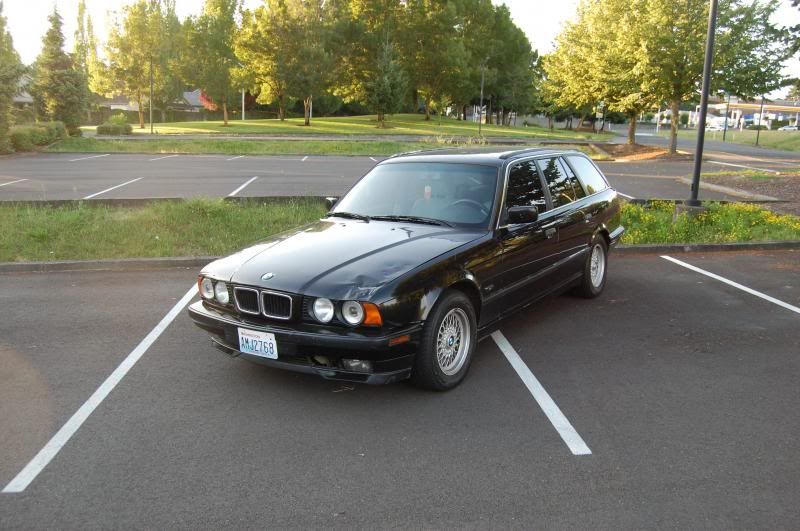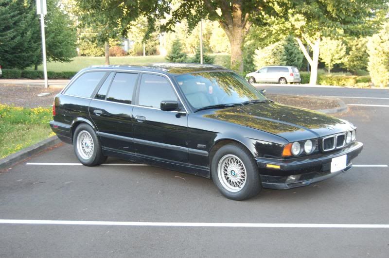 1995 E34 530iT with 178xxx miles, black over dove, runs and drives good. 3.0 V8 has nice power while still giving you good MPG, fresh oil change, no coolant leaks, auto transmission shifts smooth. A/C blows cold! and heater blows hot, Alpine CD player, soft leather seats and ample room in the cargo area. Brakes are good, paint still looks pretty nice, 540 front bumper.