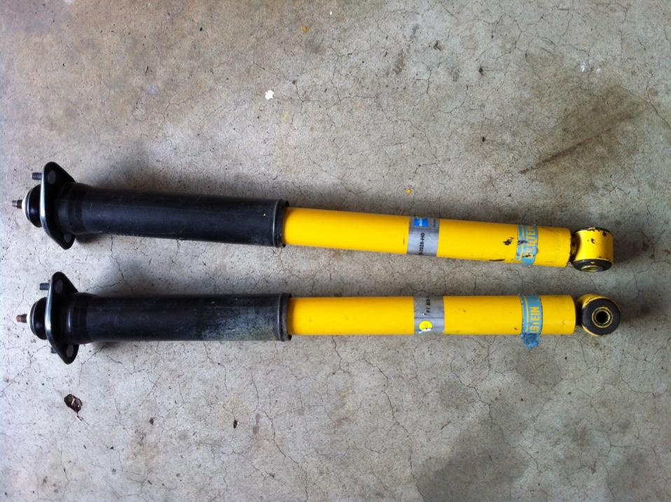 Pair of rear Bilstein shocks. Unknown mileage. They rebound when compressed so they still have life in them. $40