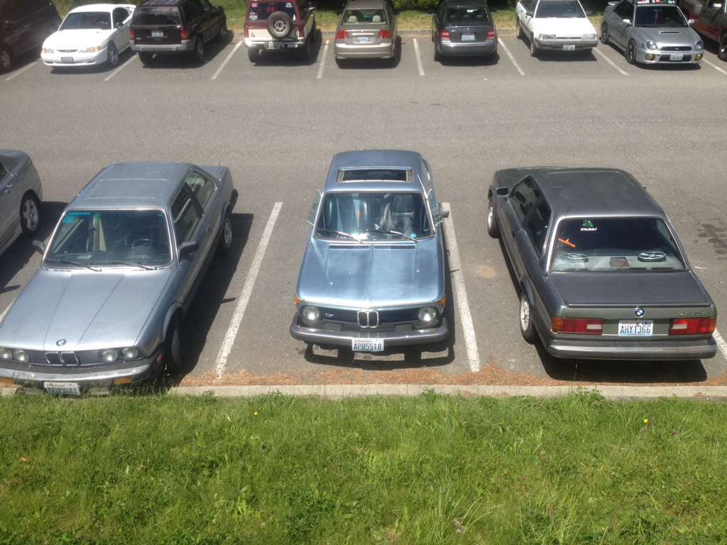 I've never seen those e30's in town before. I have seen your 2002 a couple of times. We have a get together the first friday of every month at Fidalgo drive- in
