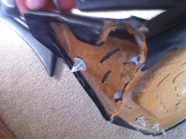 posting pictures of the damage on the door cards, small puncture from sitting in storage and the particle board is cracked right next to where the lock sits. im sure some hot glue and popsicle sticks would stiffen it back up. $60 for 4 door cards.