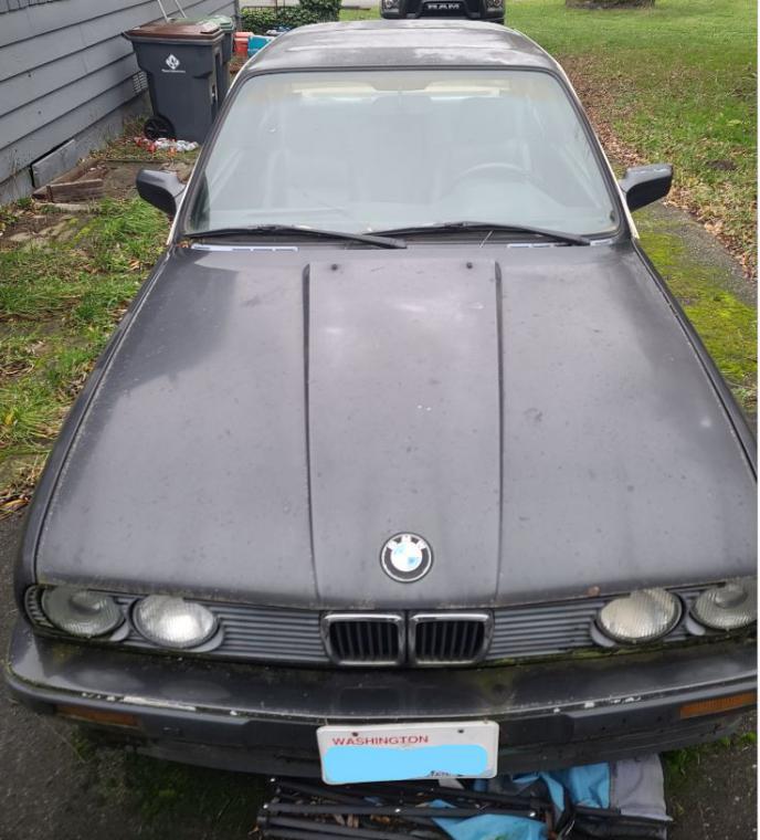 No longer have storage available for my E30 coupe project. Wanted to restore it and eventually do a manual swap. As is, >200k miles (needs odometer/speedometer fix), needs new head gasket and maybe oil pan gasket - oil leaks on outside of block, no coolant leaks, still good compression and strong running. AT won't shift when cold and shifts hard after warmed up. Front driveshaft splines spot welded to transfer case output. There is a full rebuild kit for the transfer case with new front driveshaft included. There's also a low mileage AT transmission included. Bilstein shocks all around, stock springs. Original 15" basketweaves in good condition. Black leather heated sports seats, leather needs work/reupholster. 3 spoke steering wheel. crack free dash. Ellipsoids. Diamond Black paint needs work. Small dent on driver's rear quarter panel near tail light, and on right rear valance. small rock chip on hood is the only spot of rust. Will upload interior pics later.