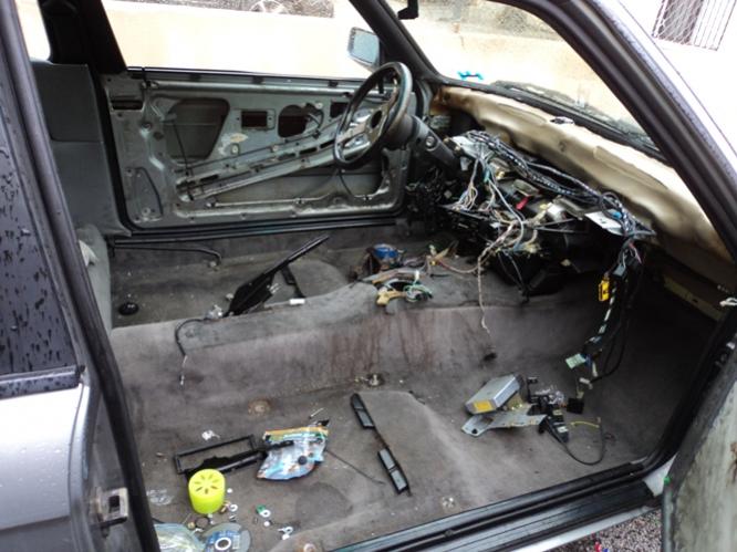 good parts still on the car: booster, steering rack, sunroof/window motors, fuse box.... some interior parts...