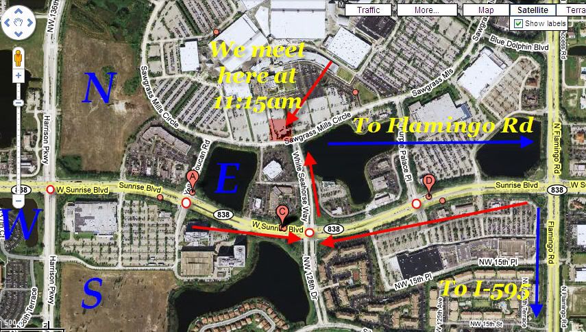 We will head out from parking lot at Sawgrass to Sunrise Blvd -east going south on Flamingo Rd to I-595 east. to I-95 North.